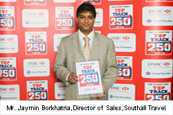 London, 18 October 2010 – Southall Travel, one of the leading travel agencies in the country, has been listed in the Sunday Times Top Track 250 list of the UK’s most successful mid-market private companies. The Sixth Annual Sunday Times HSBC Top Track 250 awards dinner was held at the Jumeirah Carlton Tower Hotel in London on the night of 14th October and was attended by owners and directors of country’s leading mid-market private companies. The sixth annual Top Track 250 league table supplement was published in The Sunday Times on 17 October 2010 with HSBC as the title sponsor.